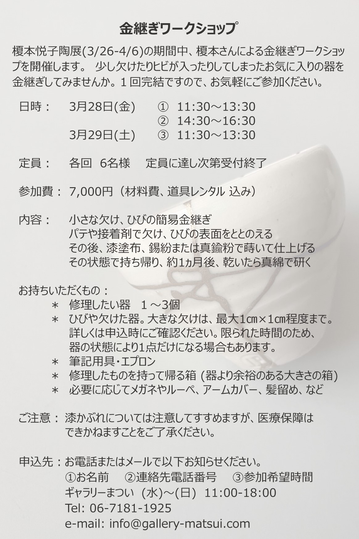 金継ぎワークショップ詳細2